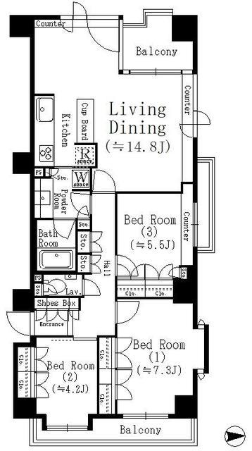 Layout | 3 BR + 1 Bath |