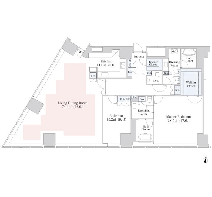 Layout | 2 BR + 2 Bath |