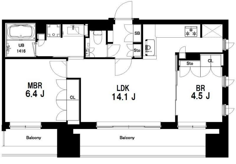 Layout | 2 BR + 1 Bath |