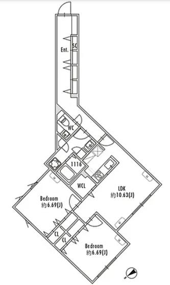 Layout | 2 BR + 1 Bath |
